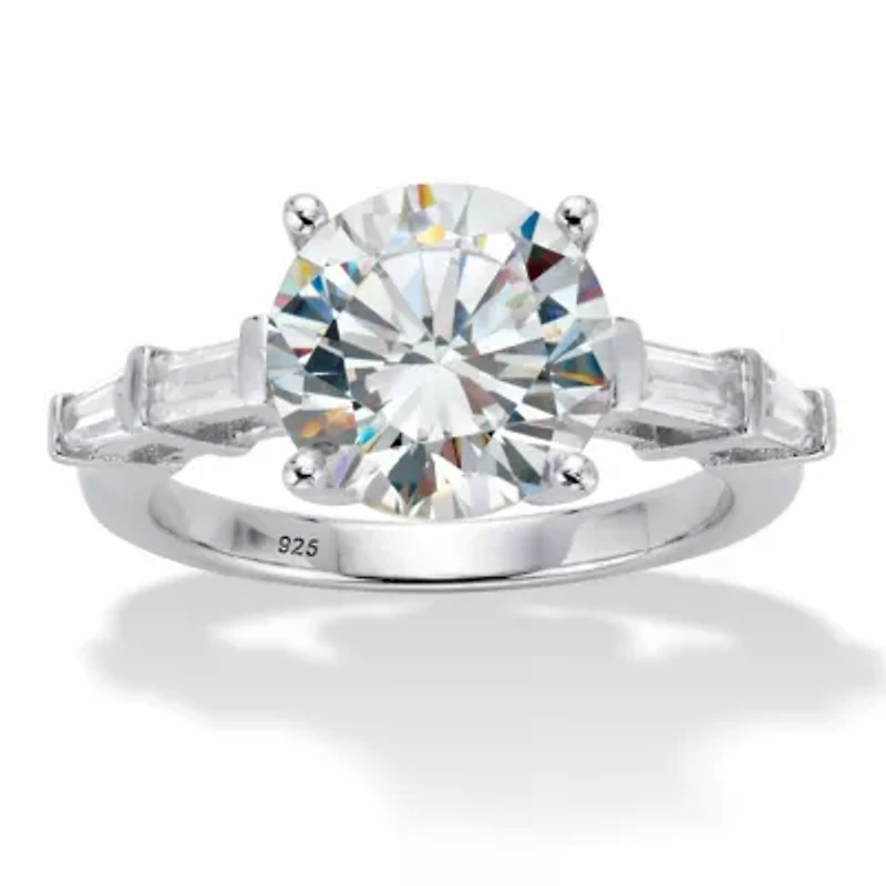 Timeless elegance is yours with this beauty. Featuring a large oval-cut cubic zirconia center stone highlighted by baguette-cut cz accents separated by golden bars. 3.08 carats T.W. Set in 14k gold-plated sterling silver. Sizes 6-10.Main Stone: 1 Oval Faceted Cut Cubic Zirconia, 2.54 carats, 10 mm x 8 mmAccent Stone: 4 Cubic Zirconias .54 cttw14k Gold-Plated Sterling Silver; Contains 3.50 grams of Sterling SilverMeasures: 23 mm wide x 10 mm long x 6 mm high; Shank Width: 2.0 mm wideIncludes gift box and drawstring pouch14k Gold-Plated Sterling SilverContains 3.50 grams of Sterling SilverShank Width: 2.0 mm wideDimensions: 23 mm wide x 10 mm long x 6 mm highIncludes gift box and drawstring pouch 5 Polished finish Warranty available China Imported Product Specifications 1.14 in x 0.39 in x 0.91 in 3.08 Material & Care Metal, Sterling silver Clean with a soft cloth.
