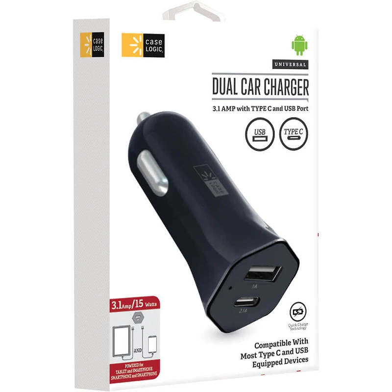 3.1A Dual Car Charger with USB Type-A & USB Type-C Ports