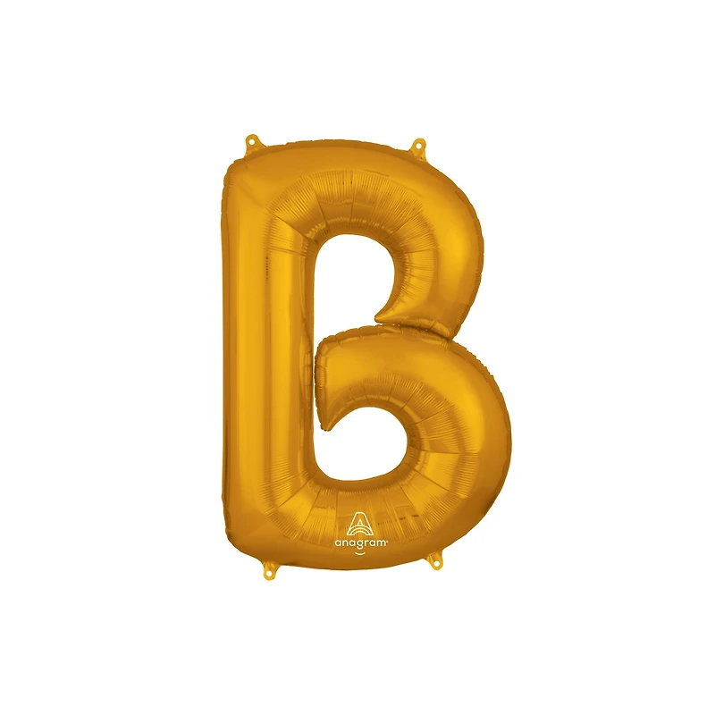 Celebrate special events with this stylish balloon. The oversized gold letter balloon can be combined with other letters to spell out a special message for photo backdrops or as part of your party décor.Details:Gold finishAvailable in multiple stylesApproximately 32" (81.28 cm) tallRequires helium or air inflationMetalized polyester film