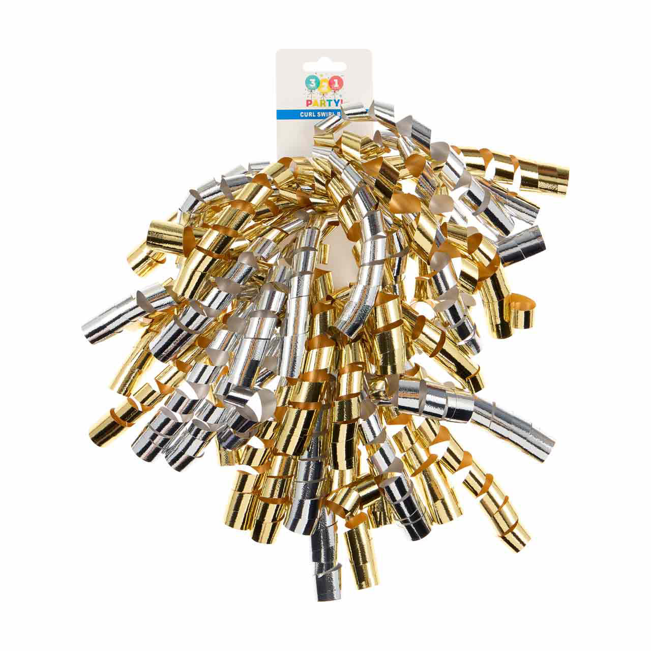 Each pack includes two giant curl swirl bows, featuring a dazzling mix of metallic gold and silver ribbons. The intricate curls and swirls create a voluminous, dynamic look that captures light beautifully, making your gifts sparkle and shine. These bows are ideal for all occasions, from birthdays and anniversaries to holidays and special celebrations.