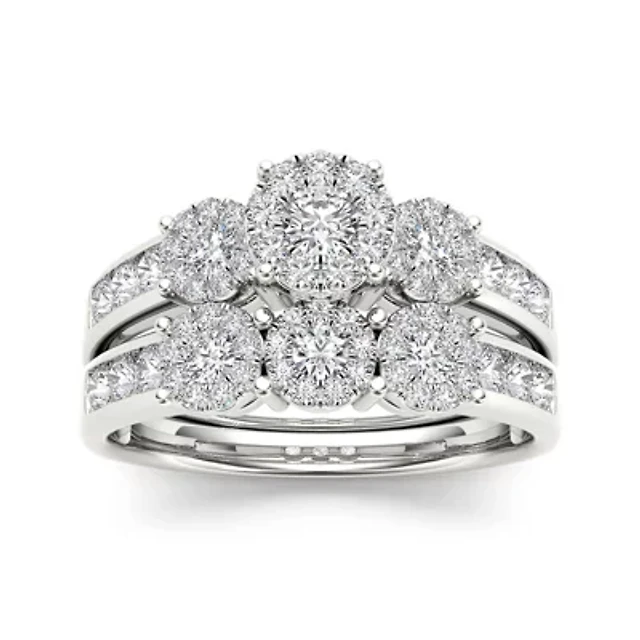 Womens 1 CT. T.W. Natural Diamond 10K White Gold Bridal Set