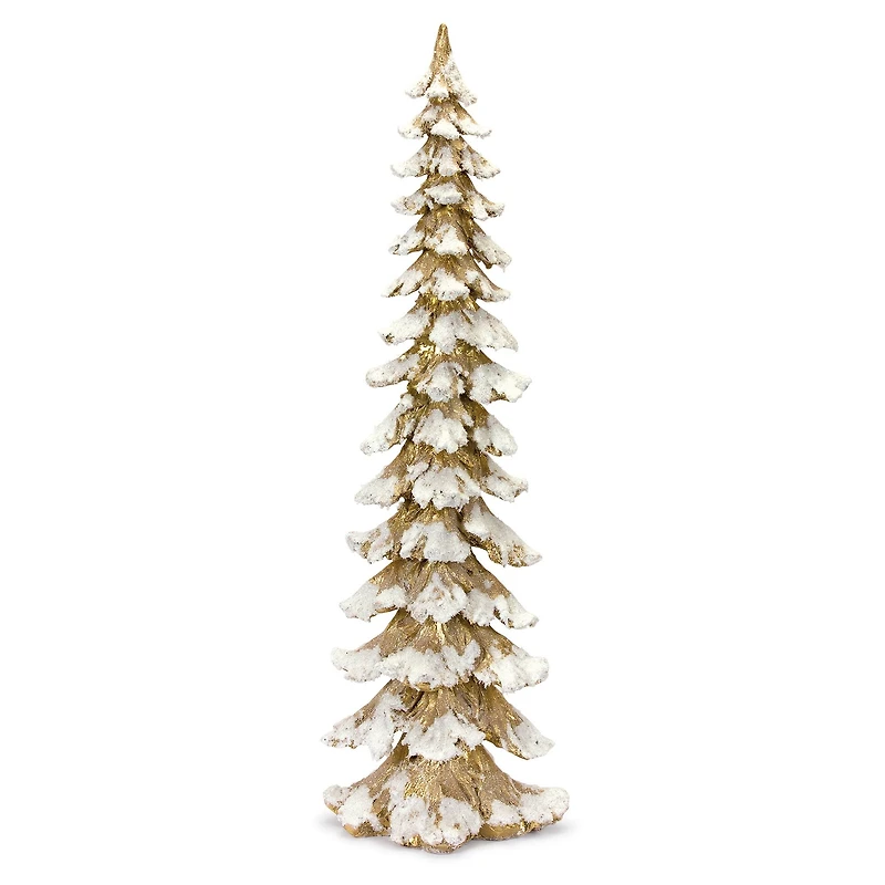 This tall, snowy tree stands over 34.5" tall! Beautifully crafted with snow-dusted boughs and a light, glittery finish.Details:White and gold colored34.5" (87.63 cm) tall1 treeResinRecommended for indoor use