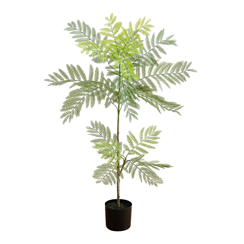 Effortlessly elevate your home décor with a artificial jacaranda tree. Its slender branches are adorned with life-like, bright green-hued leaves that add a pop of color into any room. Crafted from high-quality materials, bend the branches for a custom look.Details:Green plant, black potOverall product dimensions: 26" x 26" x 43"Nursery pot dimensions: 6.5" x 7" x 7"Great for living rooms, bedrooms, and entrywaysBend and shape the branches for a custom lookCrafted from premium materials, you'll notice the attention to detail in every leafHoused in a nursery planter, display in your favorite decorative container for a life-like feelManufactured using synthetic materials and constructed to be life-like in appearanceRecommended for decorative indoor useNote: Item will need to be re-shaped when removed from the box; this plant can easily bend for reshaping purposes - please separate and fluff the stems and leaves to achieve desired fullness