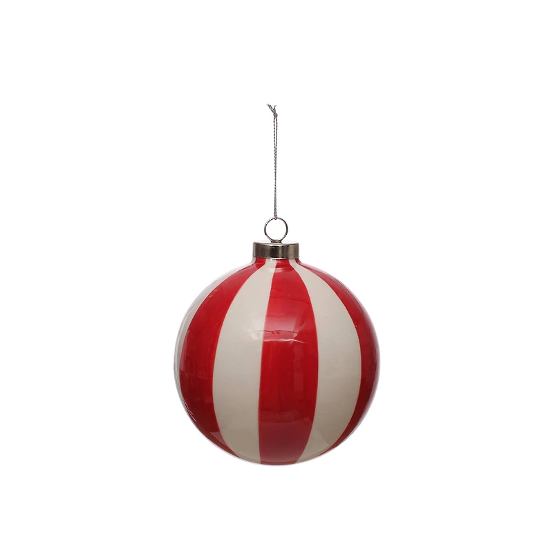 Bring loads of classic Christmas cheer to your space with this festive ceramic ornament from Ashland. Featuring vertical red and white peppermint stripes, this eye-catching ball ornament will look fantastic hung on your holiday tree or incorporated into a display on the coffee table.Details:Red and white vertical stripes3.54" x 3.54" x 3.75" (9cm x 9cm x 9.5cm)CeramicRecommended for indoor use only