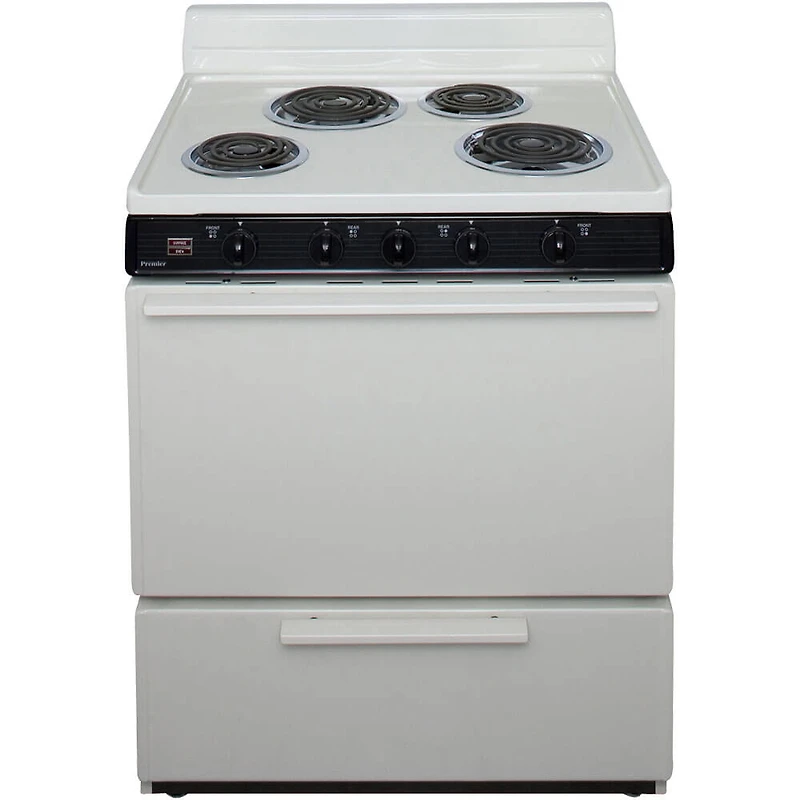 Easy to use front controls eliminate reaching over hot burners. Convenience of 2 to 8 In. and 2 to 6 In. top burners, two heavy duty oven racks, a full 25 In. wide oven plus a full width storage drawer gives this 30 In. electric range unique features