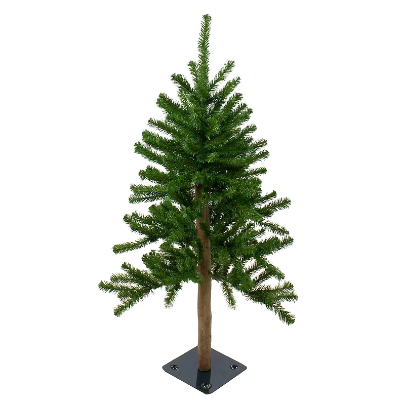 This wonderful Alpine tree is the true meaning of woodsy. It is the perfect replica and features a realistic wood trunk with thick and full tips. It is ideal for entryways next to a hearth or as a rustic Christmas tree.Tree Style:Medium AlpineGreen195 branch tipsPVC, metal, glassDimensions:3 ft. height22" diameter1.5" wide tips22" x 22" x 36" storage sizeLighting Information:Clear lights50 clear lightsUL certified and approved24" green lead cordFeatures: Lights are equipped with Lamp Lock featureBendable wire branches for easy positioningIf one bulb burns out the rest will stay litComes with replacement bulbs and spare fusesFor indoor use