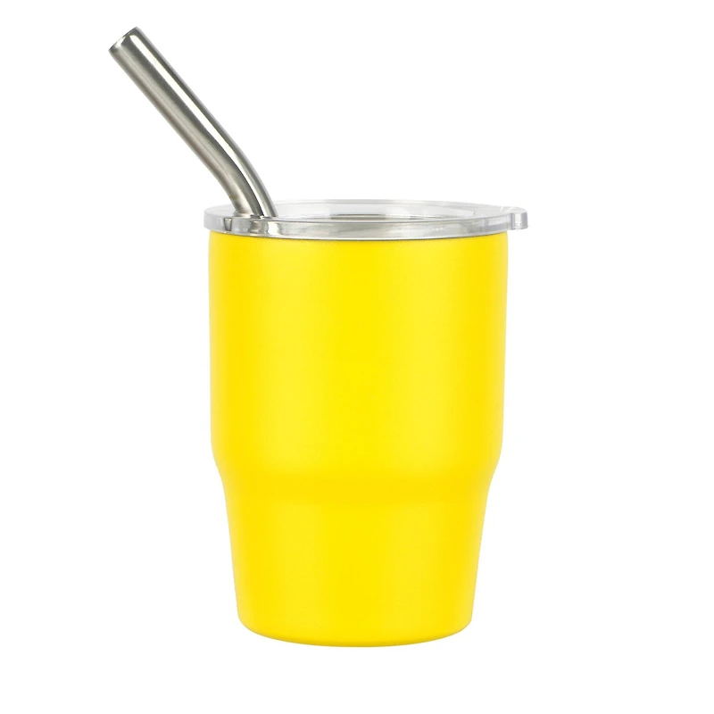 This vibrant neon mini stainless steel tumbler is perfect for little sips. Featuring a plastic lid and stainless steel straw, the double walled design will keep drinks cold for longer. Customize with vinyl, stickers and more to personalize for yourself or gift to a friend.