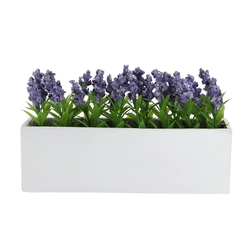 Artificial flowers add color and life to any décor. This lavender plant is beautifully maintained in a white window box. Details:Lavender4" x 9.25" x 2.25"Recommended for indoor use only (if using outdoors, place under a covered area)Material(s): plastic