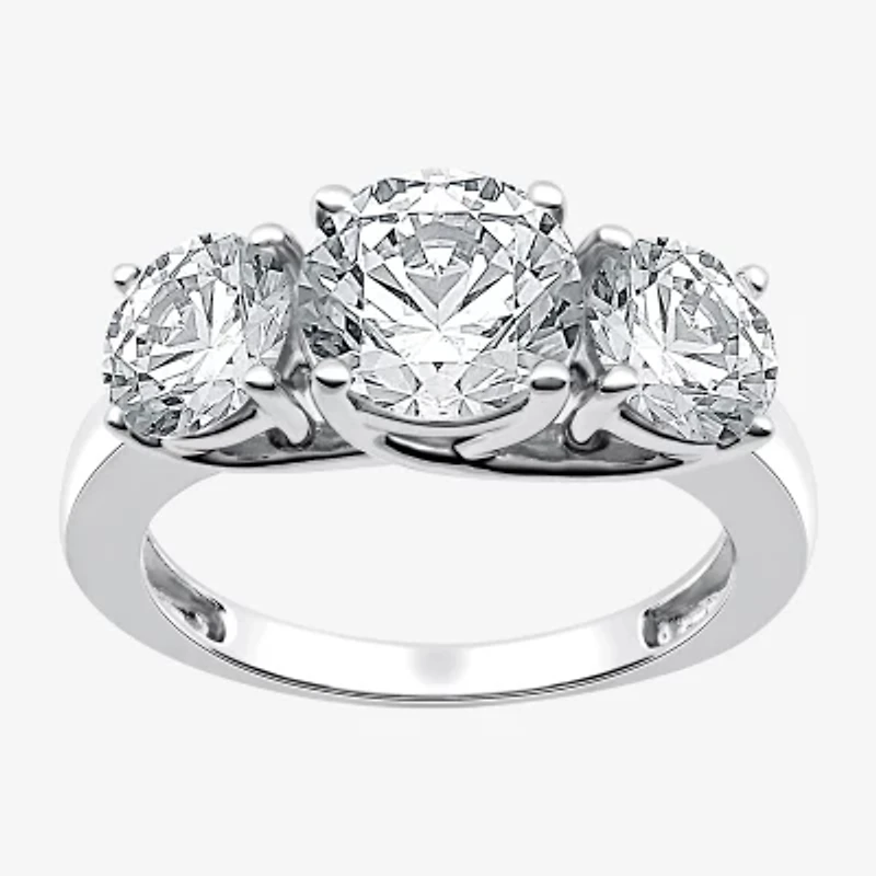 Take her breath away with this women's 3-stone engagement ring featuring 4 carats of round-cut Lab-Grown Diamonds in a 14K White Gold prong setting. Pair it with a simple wedding band to let the ring shine.