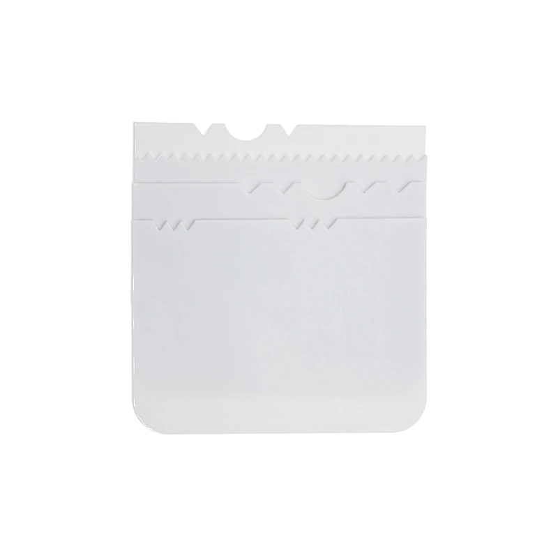 The decorative edges of the scrapers allow for more creativity when decorating. This tool is ideal for a cake baking enthusiast.Details:White4.3" x 3" (10.9cm x 7.6cm)4 scrapersFood safeBefore the first and after each use, hand wash in warm soapy water and dry thoroughly.Easy to use and cleanABS plastic
