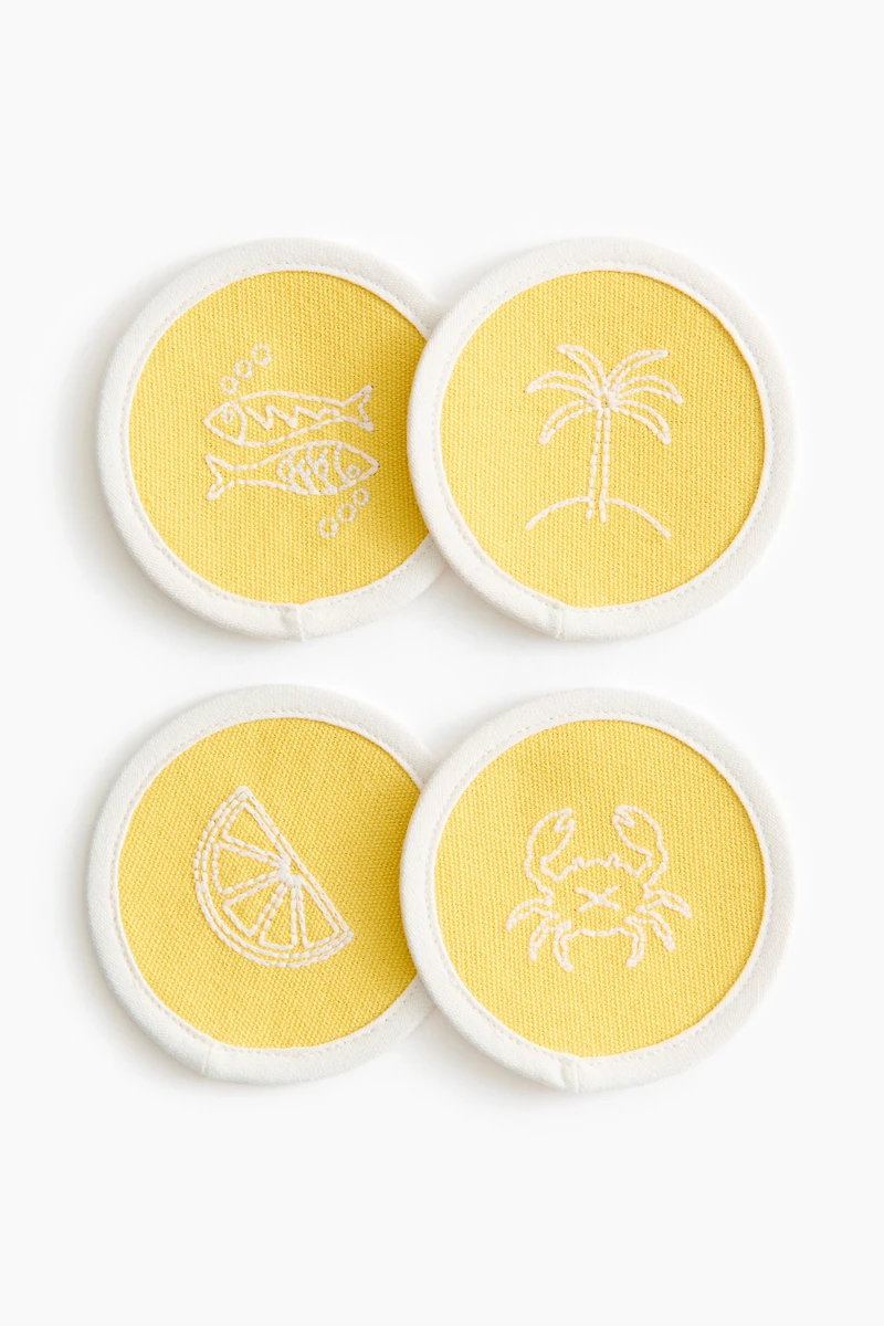 4-Pack Coasters with Embroidered Motif