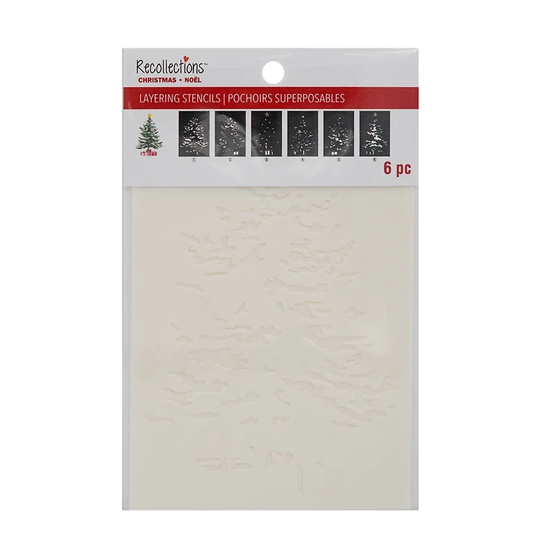 Add a layered Christmas tree print to your holiday papercrafts with this stencil set from Recollections. Simply place the first stencil on your paper, secure with tape and apply inks starting with the lightest shade to the darkest shade for best results! Repeat with the other stencils to create a Christmas tree masterpiece on your Christmas cards and gift bags.Details:Christmas tree design4" x 6" (10.1cm x 15.2cm) stencil sizeSet of 6 layering stencilsPlasticGently wipe the stencils using a soft or slightly damp cloth and let dry after each use
