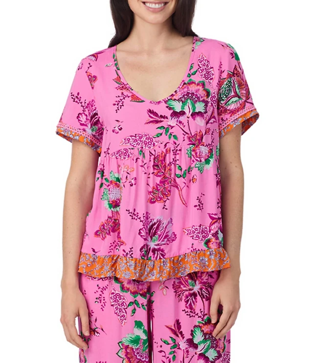 40 Winks Bohemian Floral Print Short Sleeve V-Neck Coordinating Babydoll Sleep Top