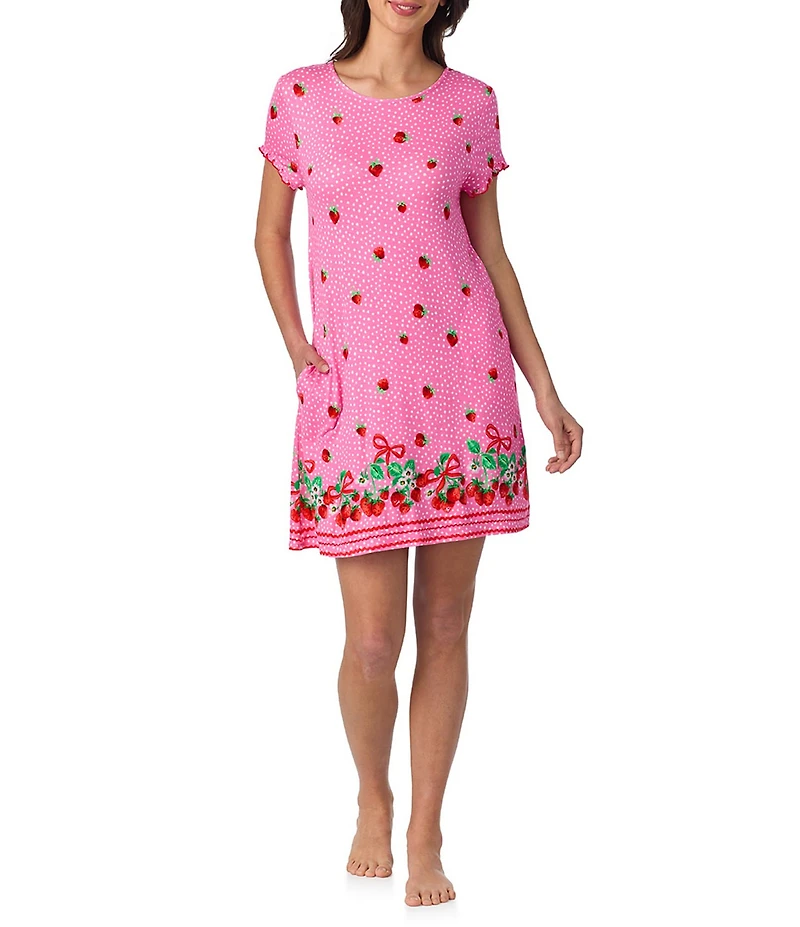 40WINKS Berry Print Short Sleeve Round Neck Jersey Knit Sleepshirt