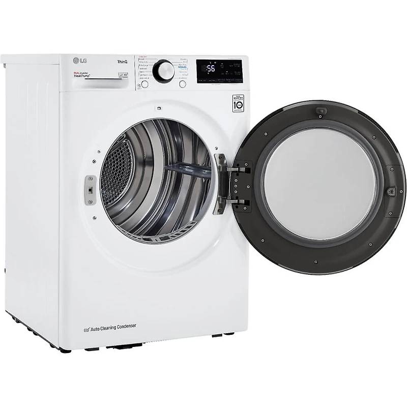This sleek dryer offers big style and big capacity in a small 24” wide footprint, with a go-anywhere ventless design that can be installed side by side or stacked on top of a compact LG washer. But saving space is just the beginning—LG’s innovative HeatPump technology saves energy with the dryer usage on every load. Unlike conventional condenser ventless dryers that extract the moisture from clothes and pumps it out of the dryer, this dryer extracts the moisture and recycles it for more energy-efficient drying, every day.