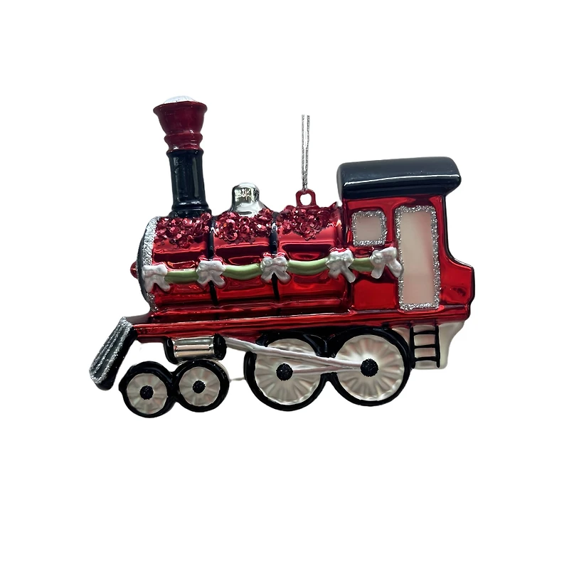 Add charm to your Christmas tree with this glass ornament from Ashland. Featuring sequins and glitter and decorated for the holiday, this adorable train ornament will be a fun addition to your holiday décor.Details:Red4.25" x 1.5" x 3.5" (10.8cm x 3.8cm x 8.9cm)Glass, polyresin, and polyester