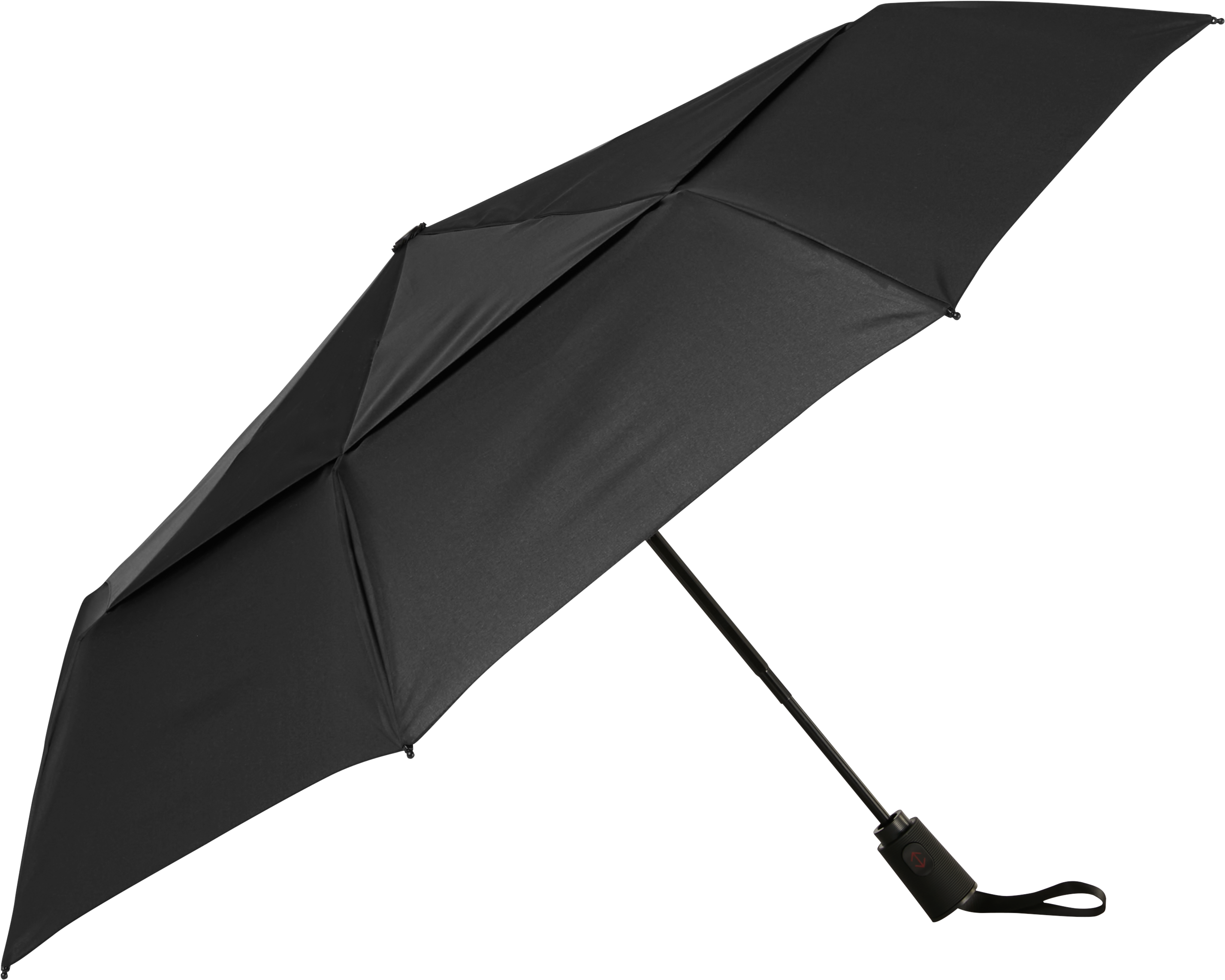 - 43-Inch Arc, Auto Open And Close, Vented Canopy Engineered To Resist Windy Conditions, Black Steel Shaft And Ribs, Tie Strap Fabric Case, Eva Cushion Grip Handle