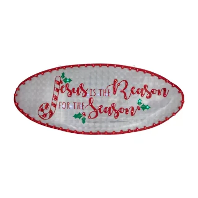43'' LED Lighted Holographic Jesus is the Reason Outdoor Christmas Sign
