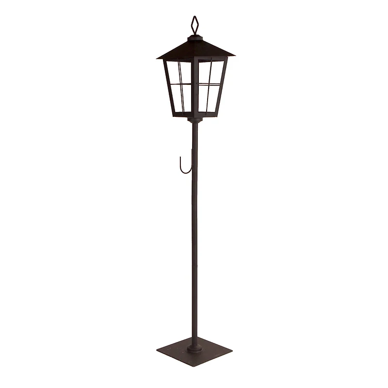 Decorate your living space with this traditional lantern on a stand with wreath holder. Add this statement piece to your front porch or entryway and add a wreath adornment. The sturdy metal composition is sure to last for seasons to come. Its a great addition to both every day and seasonal décor. Just add real wax or LED candles to complete the look.Details:Black7.25" x 7.25" x 43.25"Metal and glassCandles not included