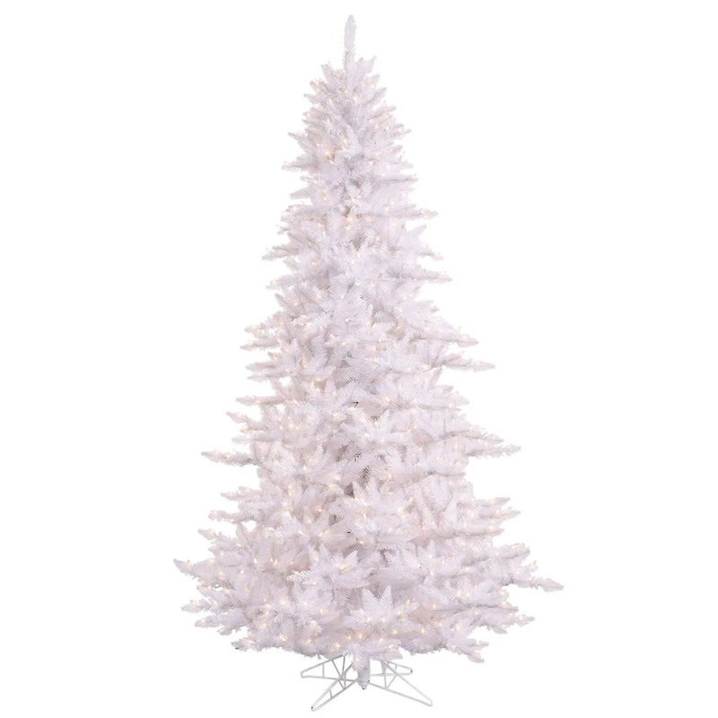 This artificial Christmas tree is sure to bring cheer to your holiday season. It is made with beautiful white PVC tips and comes with a metal tree stand.Tree style:MediumWhite525 tipsPVC and synthetic materialsDimensions:4.5 ft. tall34" diameterLighting Information:Warm white250 LED lightsFeatures:Recommended for indoor use onlyOn/off step switchMetal tree stand included