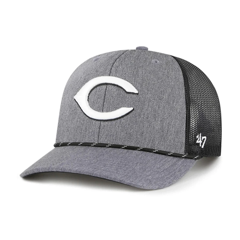 Grab this '47 Carbon Rope Trucker Adjustable Hat to add to your Cincinnati Reds collection The '47 Trucker features a structured silhouette with a cotton twill front and a breathable mesh back ensuring comfort and breathability for all-day wear The embroidered team logo with raised details adds a touch of Cincinnati Reds pride to your look while the rope embellishment on the visor provides a stylish accent