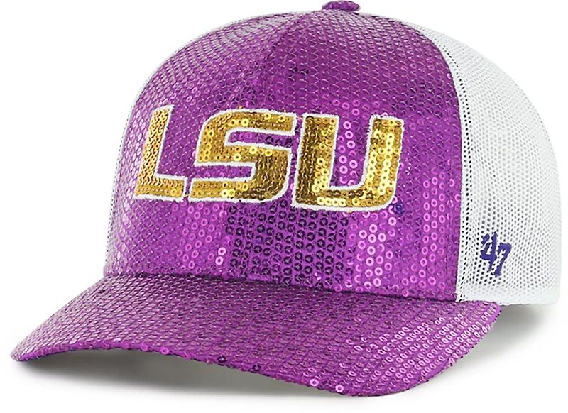 Represent the Tigers when you put on the '47 Louisiana State University Women's Dazzle Trucker Cap. The sequin material and hard mesh construction offers comfort and durability, while the embroidered logo puts your team pride on display.