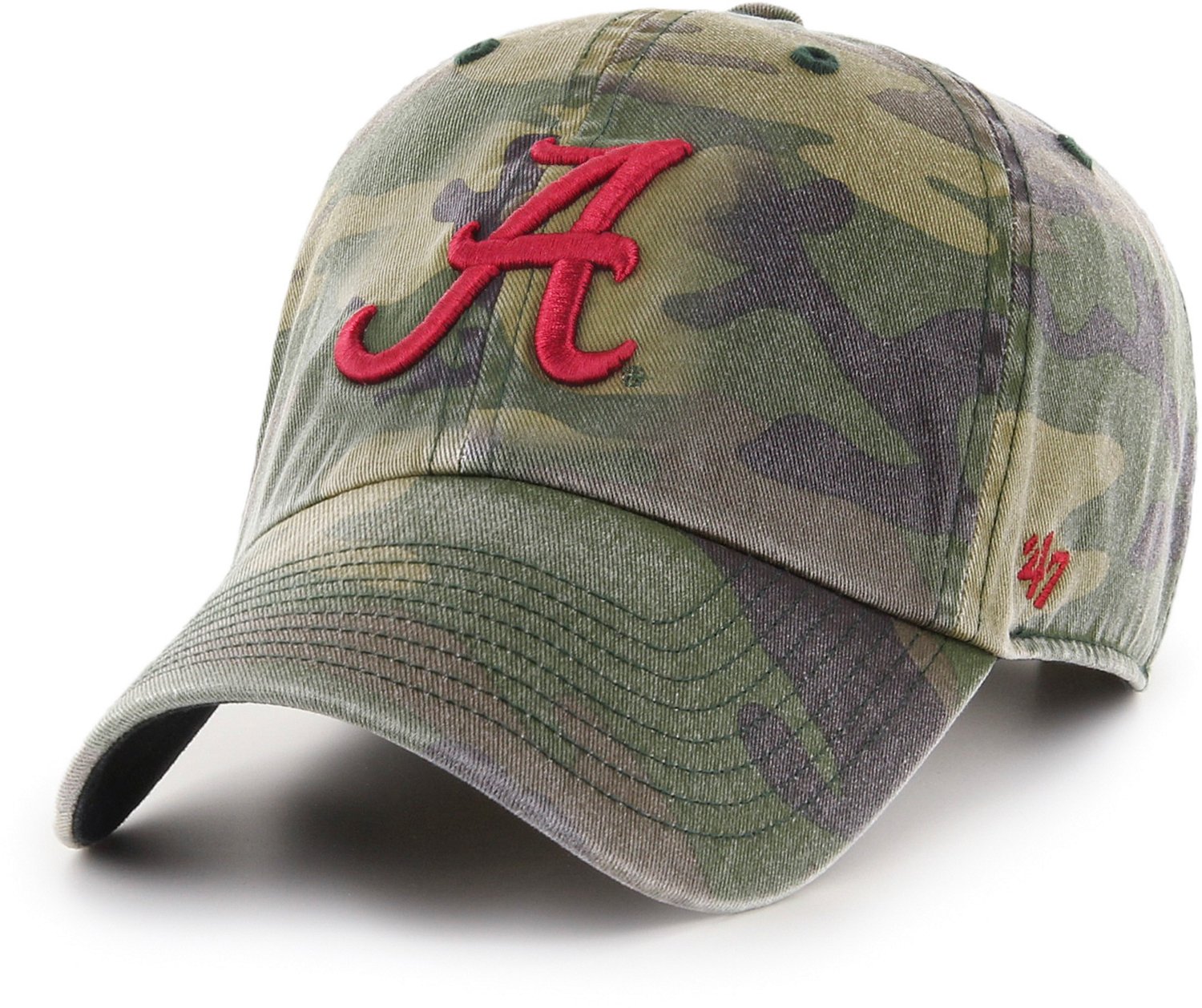 Stay shaded at the Crimson Tide game with the '47 University of Alabama Camo Clean Up Cap. This relaxed cap is made from garment-washed cotton twill for comfortable wear and has an adjustable strapback closure for a secure fit. The embroidered Alabama logo on the front shows your team spirit.