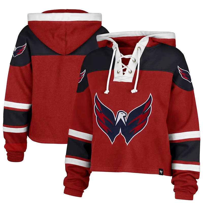 The true fan's choice for Washington Capitals style is this '47 Cropped Lacer Hoodie The comfortable cotton-poly blend fleece and cropped hem give it a modern feel It also features a unique lace-up neckline for an extra touch of sporty style Add a bold splash of Washington Capitals pride to your game day look with this must-have hoodie