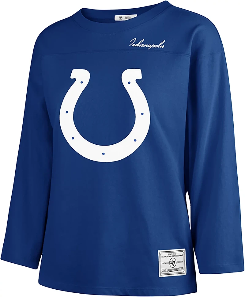 Get pumped to watch the next game by throwing on the 47 Women's Colts Game Nod Timeless T-shirt. This T-shirt is made of 100% heavyweight cotton jersey to help keep you feeling good and features a team graphic on the front to express your fan pride.