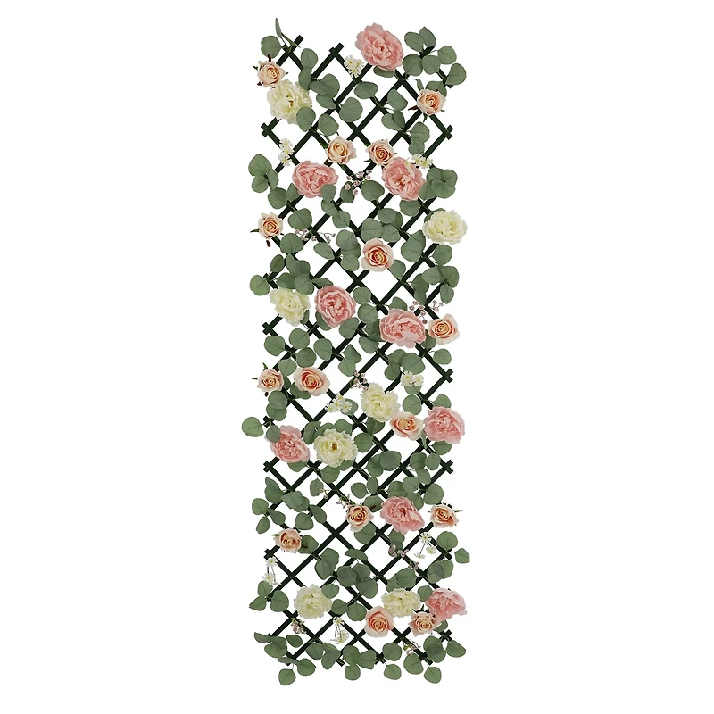 Give your springtime decorating a touch of rustic charm with this floral trellis from Ashland. Featuring pink and white peony and rose blooms with berries, hang this expandable trellis in your entryway to welcome the warmer seasons into your home.Details:Pink and white47.2" x 3.35" x 27.6" (120cm x 8.5cm x 70.1cm)Extends to approximately 20" x 60" (50.8cm x 152.4cm)Polyester, plastic and Styrofoam®For indoor use