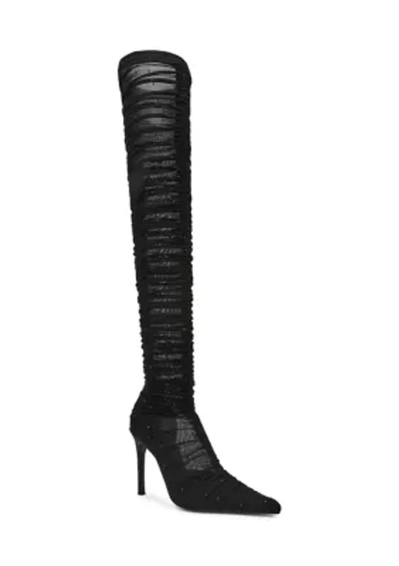 BLACK MESH Slip-on Imported Product Specifications 4 in. 14.5 in. 23 in. M Material Rouched Mesh, Rhinestones, Synthetic Mesh