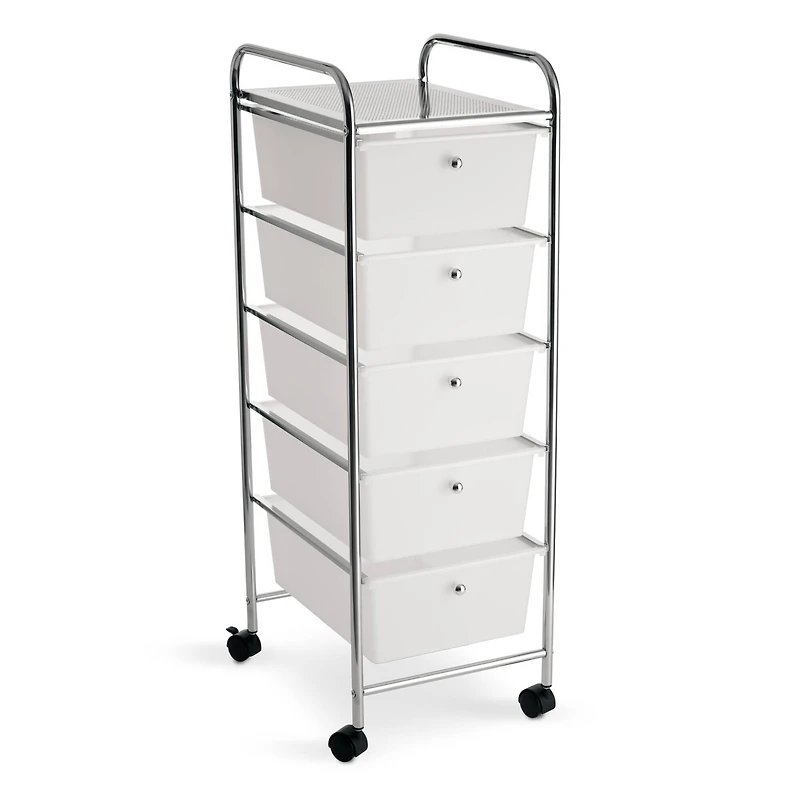 Keep your workspace neat and organized with this five-drawer rolling cart from Simply Tidy. Perfect for storing your classroom materials, crafting supplies, office essentials and more, this cart allows you to move the materials you need safely from room to room while keeping everything at hand and easy to reach.
