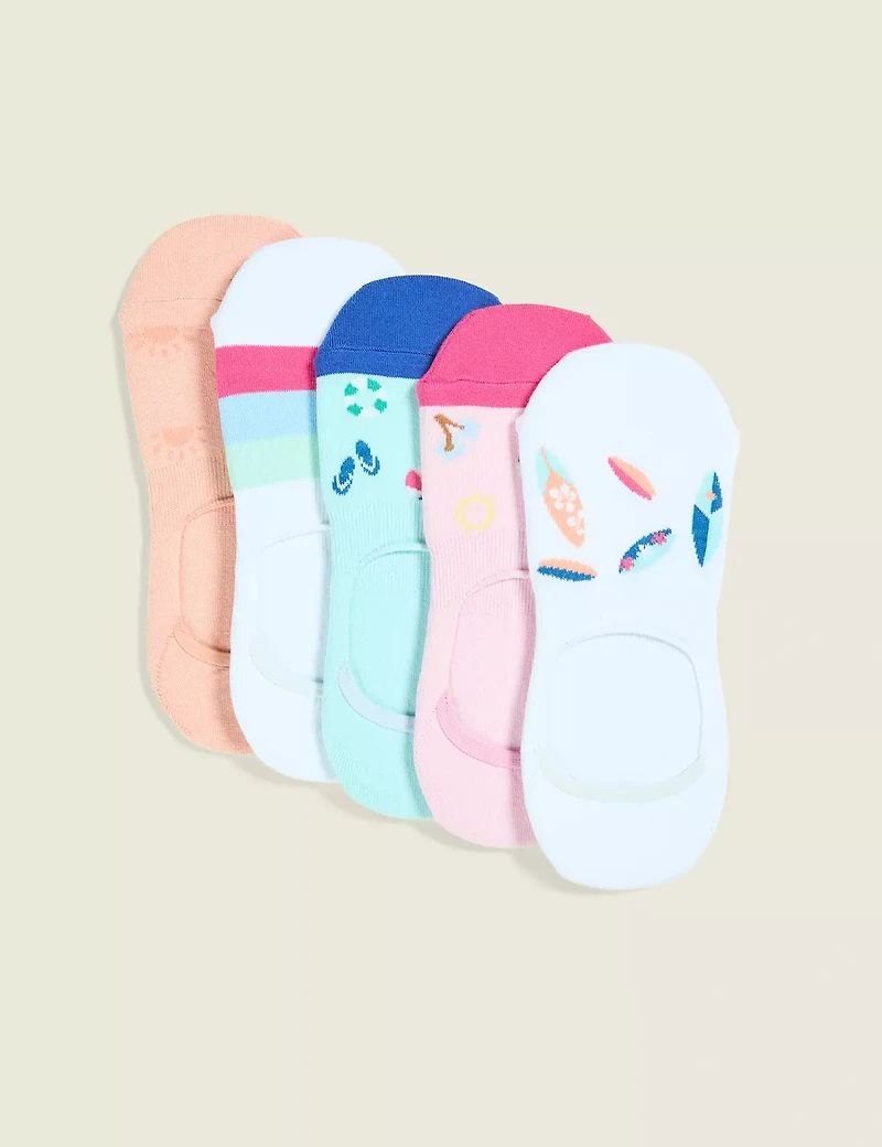 Available in Plus Size A 5-pack of comfy no-show socks to give your top drawer a refresh. The beach-themed designs will have you dreaming of your next vacation. FIT: Ultra low-cut no-show socks offer invisible comfort Reinforced heel and toe FABRIC: Cotton/Spandex Blend Machine Wash Item Number #414474 Imported Plus Size Hosiery ". Plus Size 5-Pack No-Show Socks - Beach Party, Women's, Lane Bryant