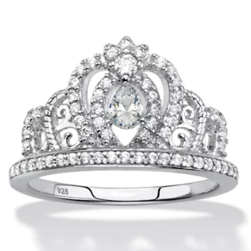 Let your royalty reign supreme. This gorgeously glam crown ring is dotted with sparkling cubic zirconia rounds and features a larger cz pear center that catches the light beautifully. .51 carat T.W. Crafted in shining over sterling silver. Sizes 6-10.Main Stone: 1 Pear Faceted Cut Cubic Zirconia, .16 carat, 4 mm x 3 mmAccent Stone: 65 Cubic Zirconias .35 cttwSterling Silver; Contains 3.10 grams of Sterling SilverMeasures: 21 mm wide x 12 mm long x 3.5 mm high; Shank Width: 2.0 mm wideIncludes gift box and drawstring pouchSterling SilverContains 3.10 grams of Sterling SilverShank Width: 2.0 mm wideDimensions: 21 mm wide x 12 mm long x 3.5 mm highIncludes gift box and drawstring pouch 66 Polished finish Warranty available China Imported Product Specifications 0.96 in x 0.47 in x 0.83 in 0.513 Material & Care Metal, Sterling silver Clean with a soft cloth.
