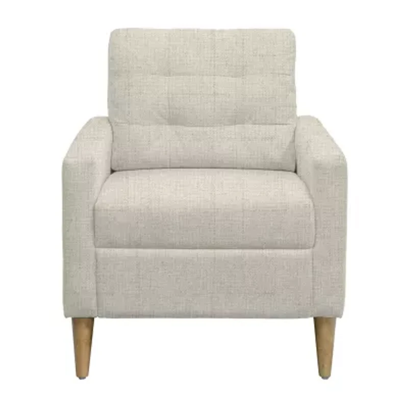 Upgrade your living space with our modern accent chair. With clean lines and a sleek track arm silhouette, it offers a contemporary touch to any room. Built to last, it features a sturdy solid wood and plywood frame, sinuous springs, and web suspension seat support. The high-density foam provides superior support, and the adjustable levelers and tool-less assembly make it easy to set up.