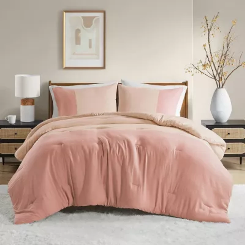 Indulge yourself in our silky soft, pre-washed bedding set displaying a charming color block design. Pieced together in two tones, including a solid reverse with a slightly weightier feel than your average comforter, it's sure to soothe your body in fluffy goodness and provide a rejuvenating night's sleep.