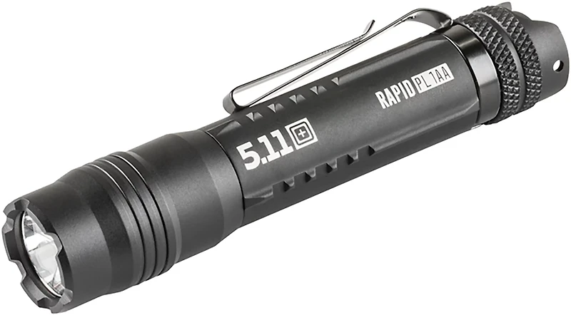 Light up dark environments with the 5.11 Tactical RAPID PL 1AA Flashlight. This compact and lightweight flashlight has a pocket clip for convenient portability and provides 190 lumens of light at a distance of 70 meters for ample lighting in the dark, or use a lithium rechargeable battery for 330 lumens of light. Impact and water-resistant aluminum makes this flashlight durable. Choose from high, low or strobe mode to see clearly in any situation.