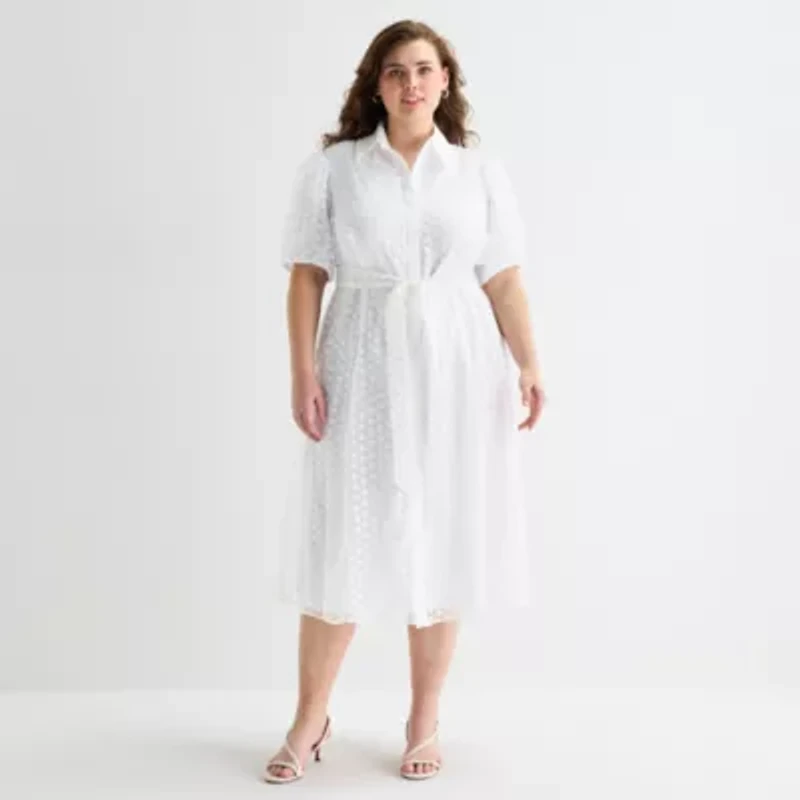 52seven Womens Plus Short Sleeve Midi Dots Shirt Dress