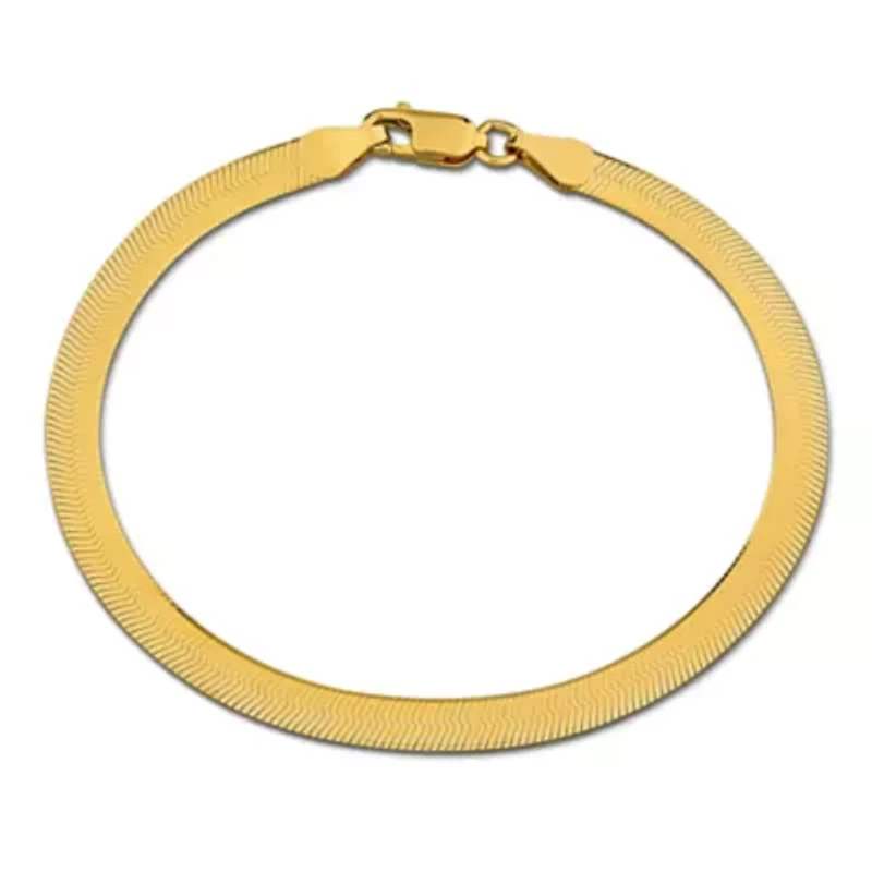 Elevate your wrist with this yellow plated sterling silver herringbone chain bracelet. Its sleek, fluid design catches the light with every movement, creating a luminous shimmer that exudes sophistication. Perfect for layering or wearing alone, this bracelet adds a refined touch to both casual and elegant looks. More than just an accessory, it embodies timeless style, effortless elegance, and everyday versatility. Lobster closure Polished finish Warranty available, 60 days Italy Imported Product Specifications 7.5" Material & Care Yellow Plated Silver Metal, Sterling silver Clean with a soft cloth.