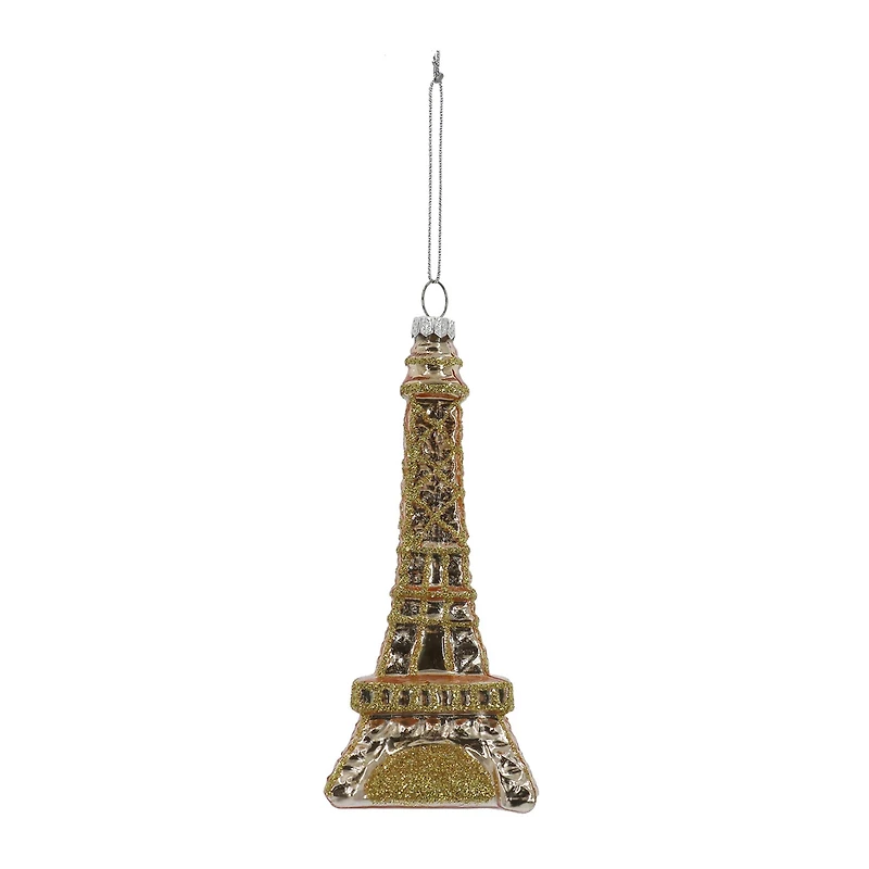 You can hang this Eiffel Tower glass ornament on your Christmas tree! Stylize your tree with color-coordinating ornaments of all shapes and with festive ornaments that express your likes and hobbies to fill in the gaps.Details:Gold2" x 2" x 5.4" (5.1cm x 5.1cm x 14.6cm)Glass and iron