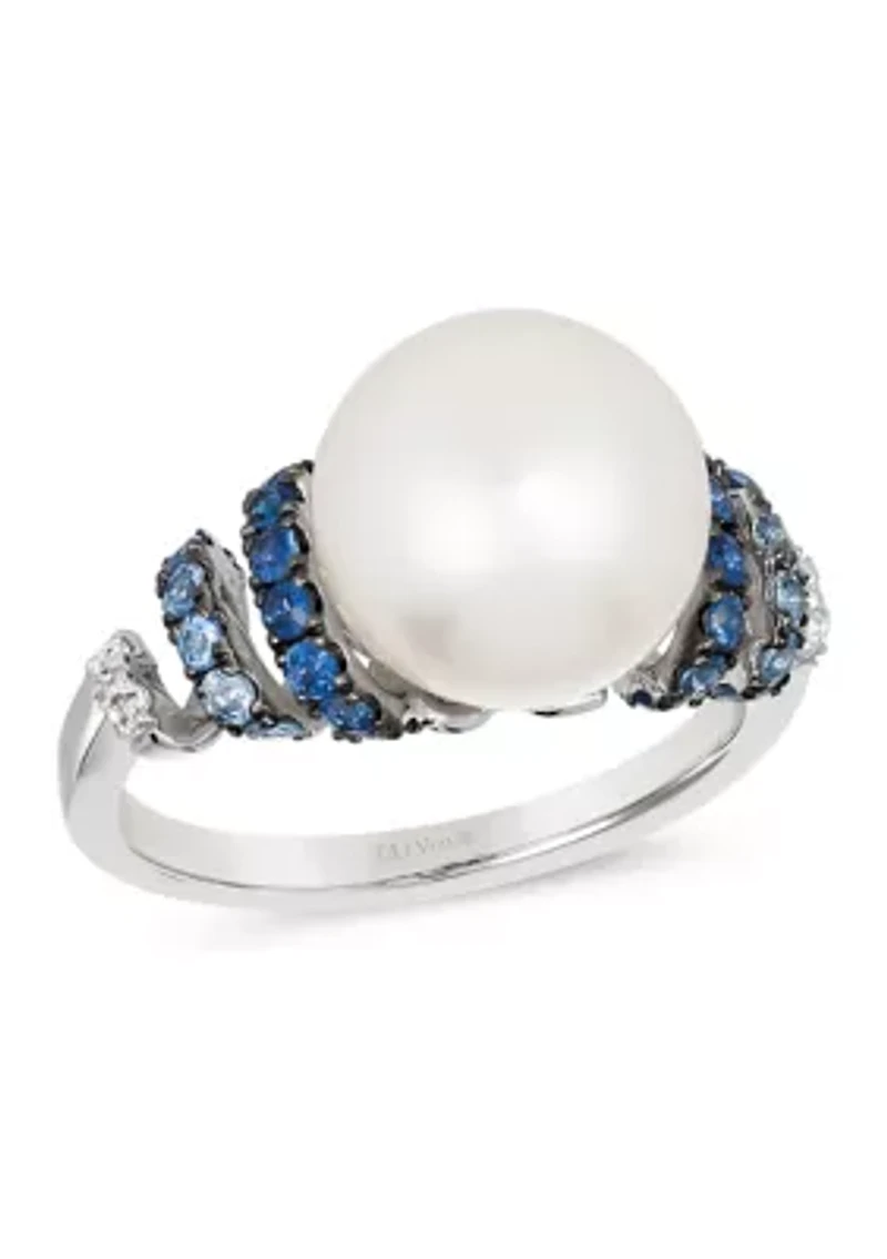A twisted 14K White Gold® silhouette adds unique style to this Le Vian® ring, featuring a single freshwater pearl and a gradient of sapphires. 1 Freshwater Pearl, 32 Sapphires Slip-on Polished finish Prong setting Warranty available Imported Product Specifications 11.34 mm x 20.63 mm x 30.24 mm 5/8 ct. t.w. sapphire Material & Care 14K Vanilla Gold® Wipe clean