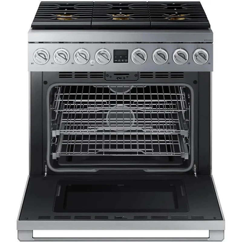 Wi-Fi Touch Control A 2.25-inch Wi-Fi enabled touch control panel allows SmartThings integration for communication between appliances as well as monitoring and operating remotely. Dual Three-Part Pure Convection Superior consistency and zero flavor transfer with Dual Three-Part Pure Convection, reducing cooking time by distributing heat evenly across the entire oven. Simmersear Burners Quickly boil water with 22,000 BTU of power or maintain a gentle simmer at 750 BTU with the all-brass, Dual Valve, Dual Ring Burner. Large Capacity Large oven cavity can accommodate multiple dishes with 5.9 cubic feet of space. Illumina Knobs Warm, sophisticated, and welcoming. The glowing knobs entice participation, inspire the imagination, and accentuate the beauty of the product. Auto Connected Hood Activate and adjust the hood with Bluetooth and ConnectOn auto-responsive technology. Turns on the ventilation in conjunction with the cooktop, and ramps up the speed as necessary. SmartThings Integration Seamlessly integrate into the SmartThings connected platform, providing an exceptional foundation for an ever-growing ecosystem of smart connectivity. Preheat, check the oven temperature, the cooking status, and remaining time, all from the comfort of your smartphone. SoftShut Hinges SoftShut hinges gently pull the door closed for a gentle touch and feel. Digital Temperature Probe Check the temperature of your dish from anywhere through the SmartThings app. Art Hairline Finish The beauty of the appliance is accentuated with long horizontal stainless steel brush stroke finish. LP Convertible Conversion kit included. Brass and Black Burners Included Includes black burner caps for daily cooking use and brass burner caps for show.