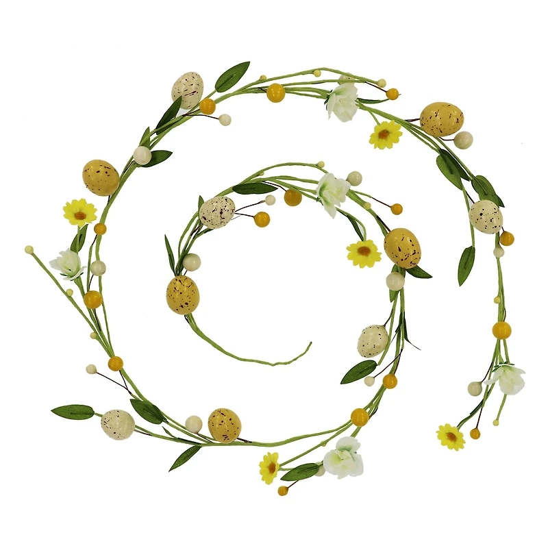 Hop into the Easter season with this dainty daisy and egg garland from Ashland. Drape this piece across a mantel or party table to bring festive springtime cheer to your space.Details:Yellow and white with green leaves5 ft. (1.5 m) total garland lengthStyrofoam®, polyester, iron wire and paperRecommended for indoor use only