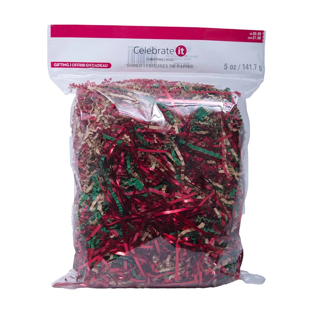 5oz. Tan, Red & Green Paper Shreds by Celebrate It™