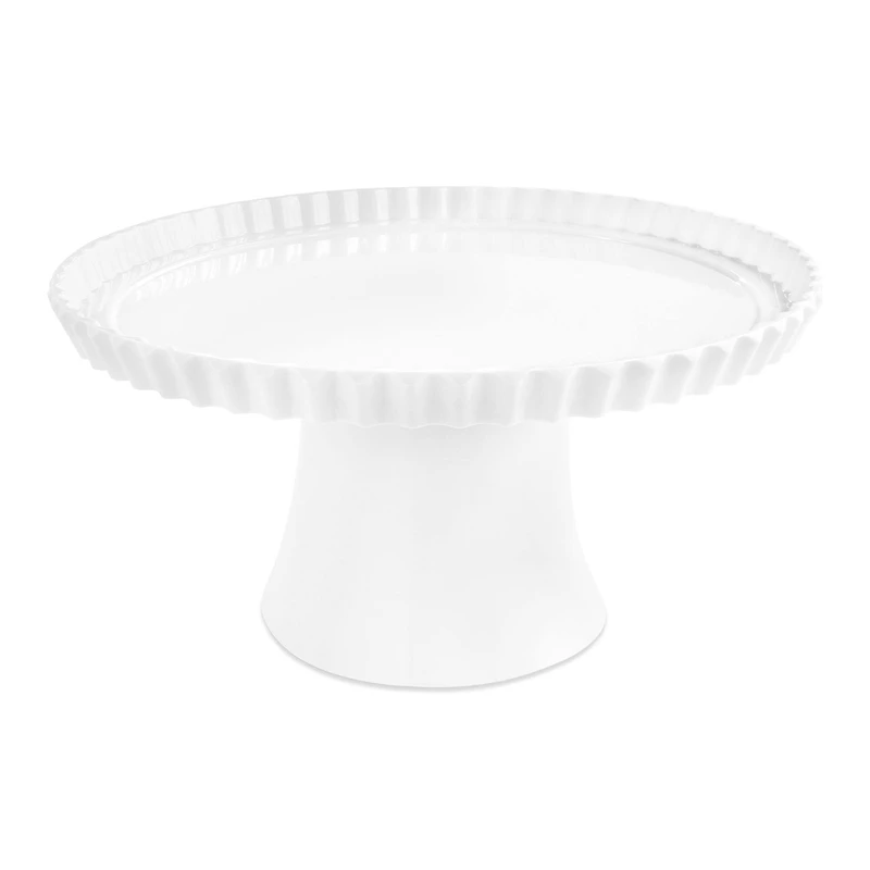 This round white cake stand by Makery is perfect for displaying at your food table at your party. Use it to showcase your cupcakes, finger sandwiches and more.Details:White9.75" x 9.75" x 5" (24.765cm x 24.765cm x 12.7cm)6 cake standsHand wash onlyWash before useNot microwave safeMelamine mixed plastic