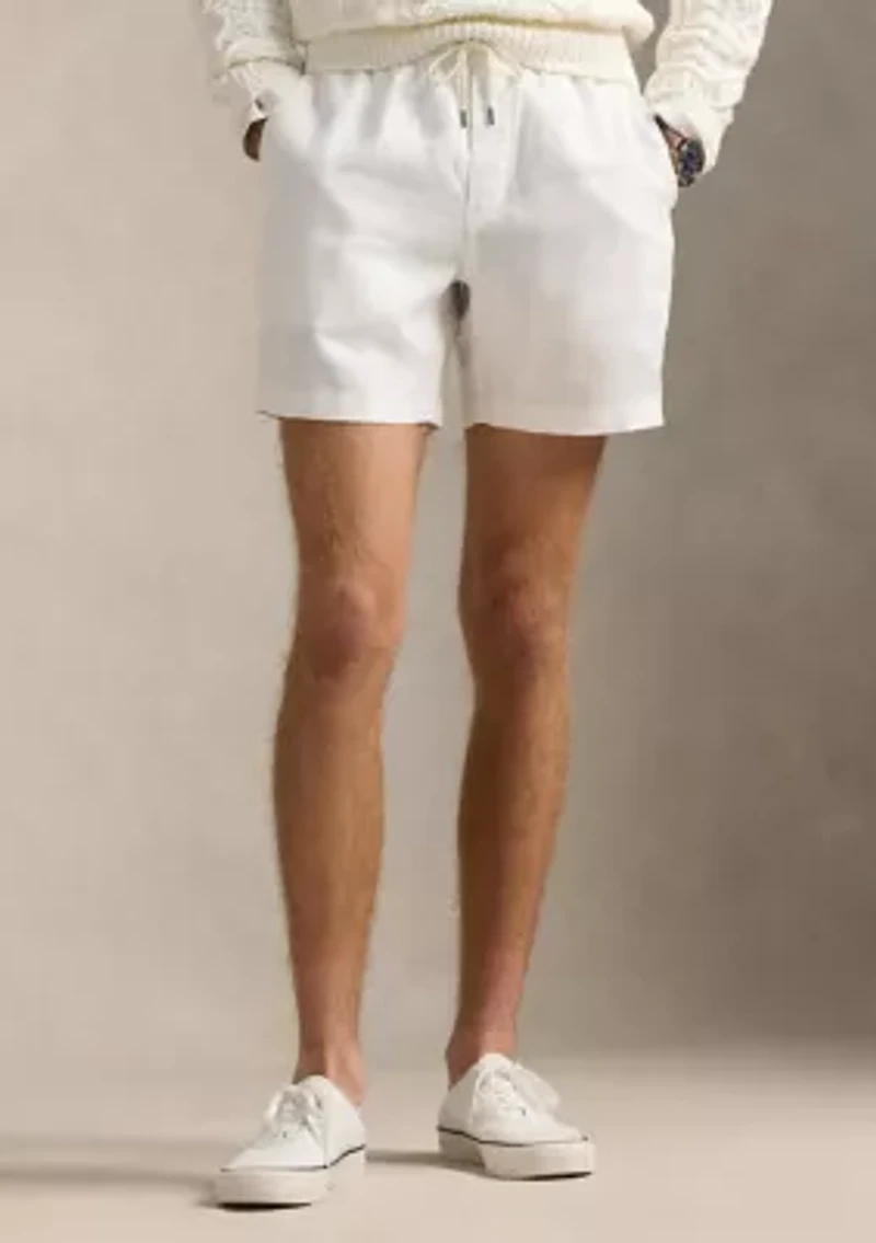 Polo Ralph Lauren brought back these 6" shorts from the archives and updated them with a comfortable drawstring waist and lightweight, breathable linen. Classic Fit: sits at the waist Eased through the leg All sizes have a 6" inseam Size medium has a 32” waist and an 11.25” rise Drawstring waistband Sewn fly Two front angled pockets Two back welt pockets Signature embroidered Pony at the left hem Model is 6'1" (185 cm) and wears a size medium Imported Material & Care Linen Machine washable