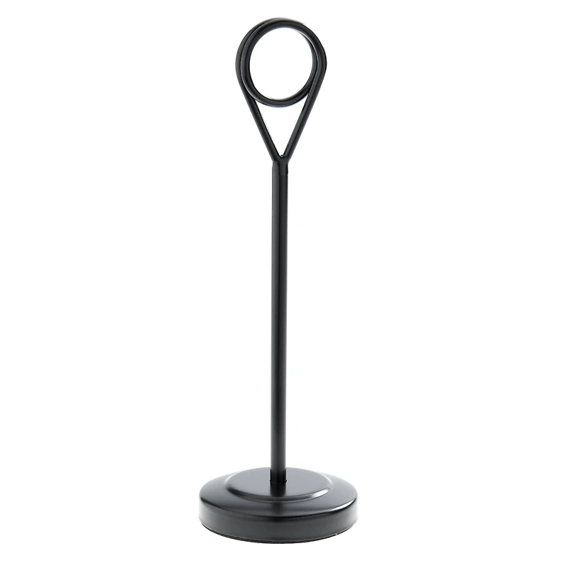 This set of metal stands from Celebrate It is a great way to display table numbers for an event or wedding. Create a custom number design for each table and display it along with a flower arrangement or candle centerpiece.Details:Available in multiple colors6" (15.2 cm) stand height1" (2.5 cm) wide holder8 standsIron and EVA