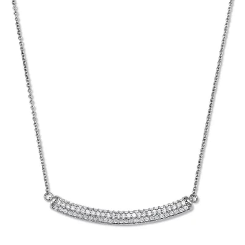 Add a stylish touch to any outfit with this sleek platinum-plated bar necklace. Rows of shimmering cubic zirconia accent stones elevate its minimalist design to allow an easy transition from casual to formal. A versatile piece for all occasions. .62 carat T.W. 18 inch length, plus 2 inch extension.78 Round Faceted Cut Cubic Zirconias, .62 carat total weight, 1.2 mm x 1.2 mmPlatinum-PlatedDimensions: 3.5 mm wide x 18 inches long x 3 mm high, plus 2 inch extensionIncludes gift box and drawstring pouchPlatinum-PlatedDimensions: 3.5 mm wide x 18 inches long x 3 mm high, plus 2 inch extensionIncludes gift box and drawstring pouch Lobster closure, 78 Polished finish Warranty available China Imported Product Specifications 0.26 in x 18 in x 0.14 in, 18" length 0.624 Material & Care Metal Clean with a soft cloth.