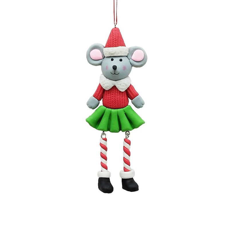 Bring whimsical charm to your home for the holidays with this clay novelty ornament from Ashland. Featuring a mouse wearing a Santa hat and top, this piece will be right at home hanging from your tree or mantel this Christmas season.Details:Multicolor6.25" x 0.75" x 2.38" (16cm x 1.9cm x 6cm)Ready to hangPVC, polyester and ironFor indoor use