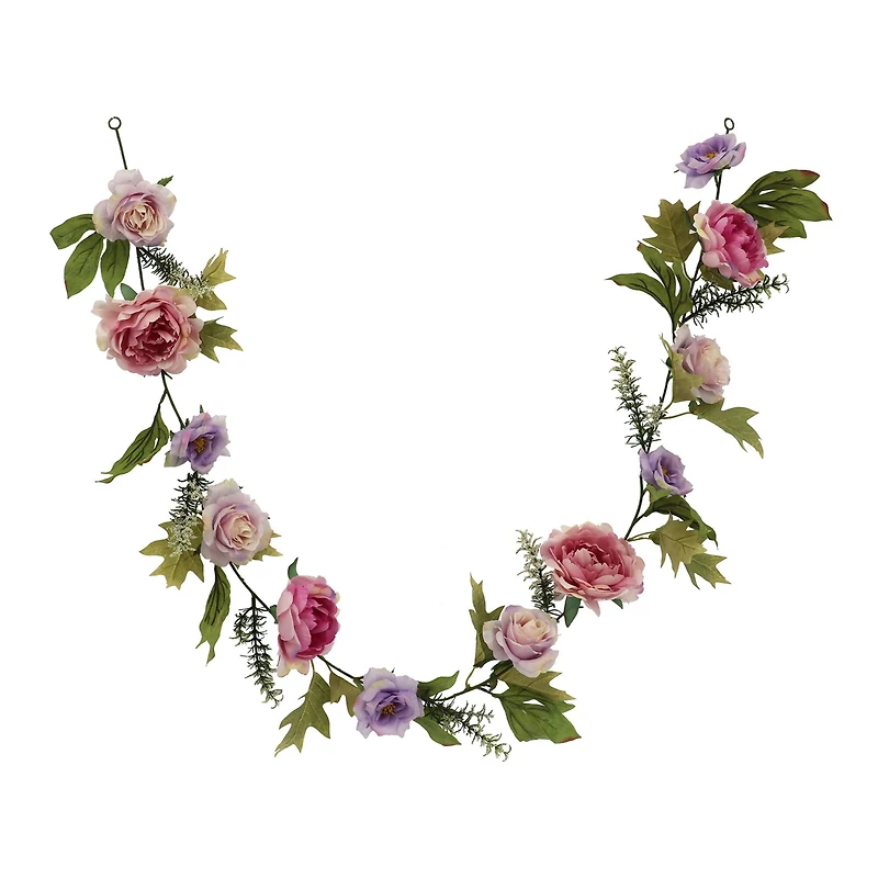 Decorate your home for spring using this pink peony and rose garland. You can hang this garland across your mantel, drape it across your headboard, hang multiple vertically on a wall to create a tapestry or wrap it around a stairwell banister to bring a fresh touch of greenery to your home.Details:Pink6 ft. (1.8 m)Polyester, plastic, Styrofoam® and iron wireRecommended for indoor use only